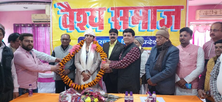 वैश्य समाज ने ई. चाँदनी प्रकाश को चाँदी का मुकुट पहना कर सम्मानित किया।