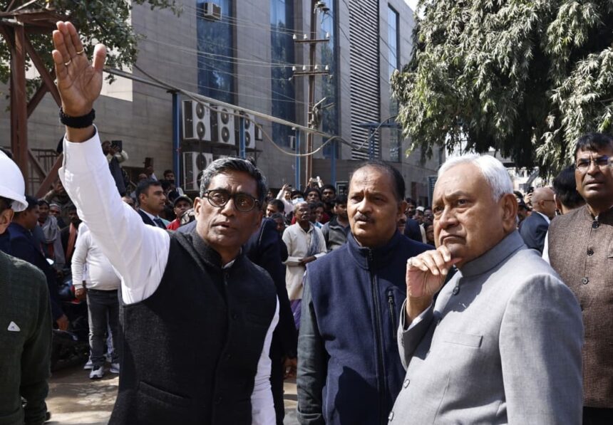 पटना, 04 फरवरी (हि.स.)। बिहार के मुख्यमंत्री नीतीश कुमार ने बुधवार को पटना मेडिकल कॉलेज एवं अस्पताल (पीएमसीएच) के पुनर्विकास और निर्माणाधीन कार्यों का निरीक्षण किया। इस दौरान उन्होंने अस्पताल परिसर में चल रहे विभिन्न निर्माण एवं विकास कार्यों की प्रगति का जायजा लिया।