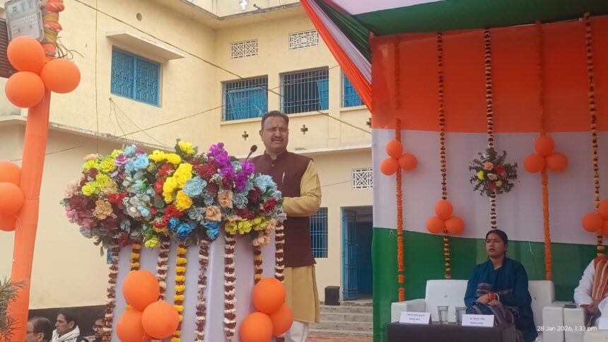 विद्यालय प्रबन्ध समिति की अध्यक्ष विधायक छोटी कुमारी ने सह सरकार्यवाह को अंगवस्त्र से सम्मानित किया।