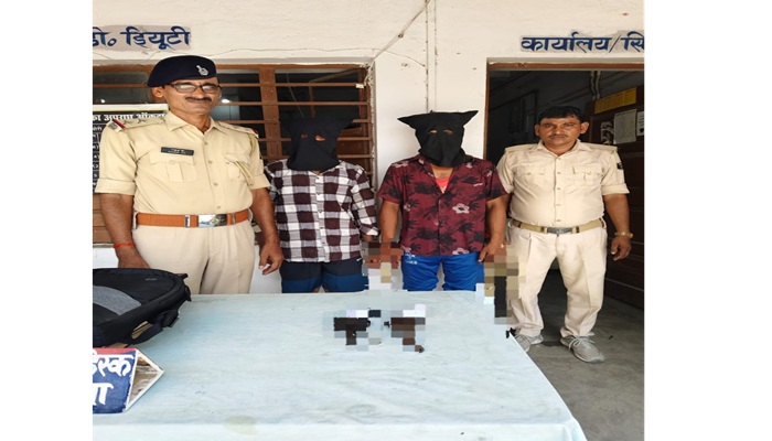 उक्त सूचना पर त्वरित कार्रवाई करते हुए बताए उक्त स्थान पर छापामारी कर 2 अपराधकर्मी को दो देशी कट्टा, एक जिन्दा कारतूस, एवं एक बीना नंबर प्लेट के मोटरसाईकिल के साथ गिरफ्तार किया गया।