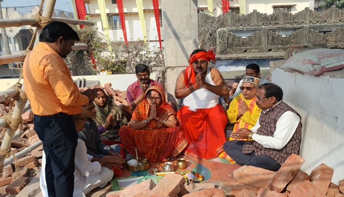 आचार्य महेश मिश्रा, पुजारी गोपाल मिश्रा, आचार्य सोमू मिश्रा के द्वारा वैदिक मंत्र उच्चारण एवं अरुण पुरोहित धर्म प्रचारक के शंखनाद के साथ पूजन प्रारंभ हुआ। मुख्य जजमान मंदिर समिति के अध्यक्ष उदय प्रताप सिंह मुन्ना ने पूजन किया।