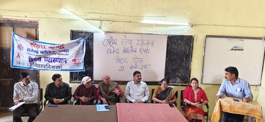 Chhapra: राष्ट्रीय सेवा योजना के तत्वावधान में राजेंद्र कॉलेज छपरा में बिहार दिवस का आयोजन किया गया। इस अवसर पर महाविद्यालय के प्रभारी प्राचार्य, प्राध्यापकगण, शिक्षकेतर कर्मियों एवं विद्यार्थियों की उत्साहपूर्ण उपस्थिति रही।