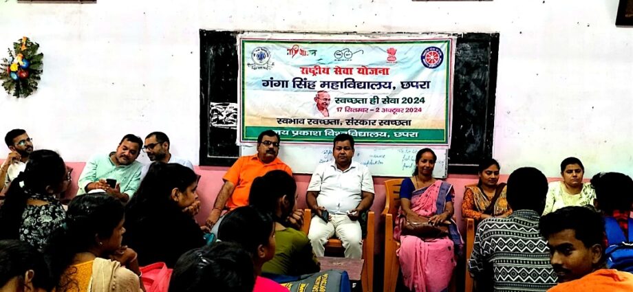 Chhapra: स्वच्छता पखवाड़ा (17 सितंबर – 2 अक्टूबर 2024) और गांधी जयंती की पूर्व संध्या पर आज दिनांक 01.10.2024 को एनएसएस यूनिट-1 द्वारा गंगा सिंह महाविद्यालय, छपरा में छात्रों को स्वच्छता शपथ दिलाई गई और “राष्ट्रपिता और स्वच्छ भारत” विषयक परिचर्चा का आयोजन किया गया।
