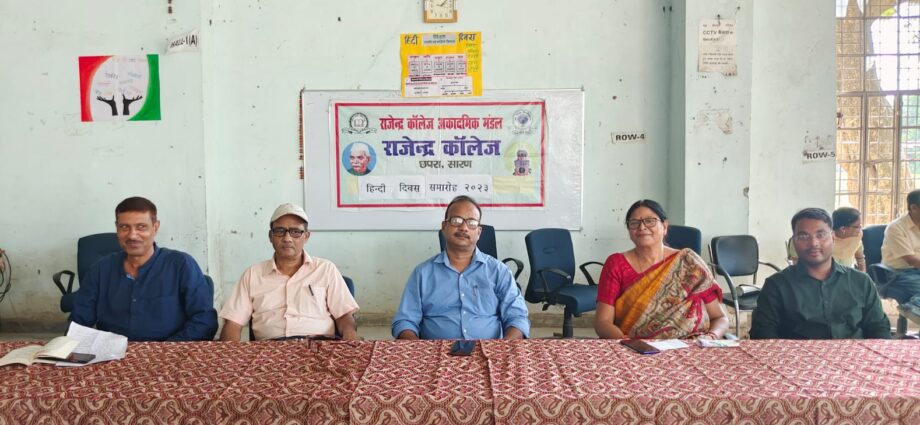 Chhapra: राजेंद्र महाविद्यालय अकादमिक मंडल के तत्वावधान में हिन्दी दिवस पखवाड़ा का शुभारंभ किया गया। इस कार्यक्रम की अध्यक्षता प्रभारी प्राचार्य प्रो. सुशील कुमार श्रीवास्तव द्वारा किया गया।