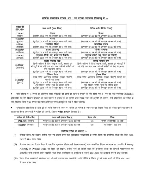 यहाँ देखें मैट्रिक का कार्यक्रम