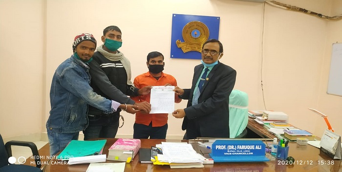 मांग पत्र सौपने वालो में मुख्य रूप से विवि अध्यक्ष पवन गुप्ता, छात्र नेता वासु विकाश, उपाध्यक्ष दीपक कुमार, राहुल श्रीवास्तव, रोहित सिंह, मंटु तिवारी आदि थे.