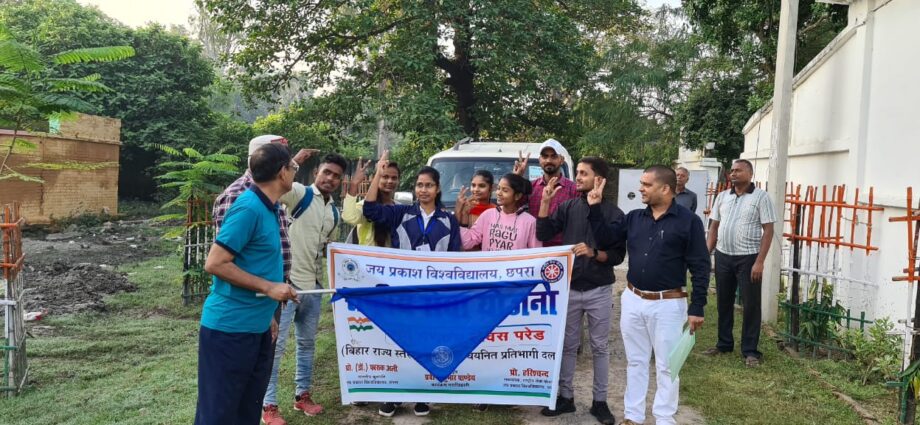 Chhapra: पूर्व गणतंत्र दिवस परेड में भाग लेने के चयन प्रक्रिया के लिए जेपीयू से चुने गए 12 सदस्यीय दल को गुरुवार को कुलपति प्रो फारुक अली ने अपने आवास से रवाना किया. चयन प्रक्रिया पटना में होगी.