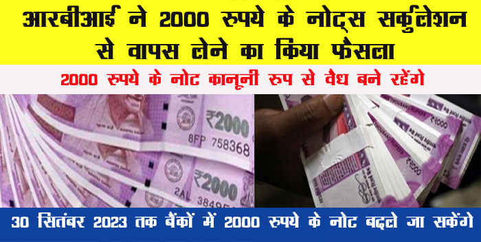 नई दिल्ली, 19 मई (हि.स.)। रिजर्व बैंक ऑफ इंडिया ने दो हजार रुपये के नोट को चलन से बाहर करने का फैसला किया है। लोगों को सलाह दी गई है कि वे 30 सितंबर तक इन नोटों को बैंकों में जमा करा दें या बदलवा लें।