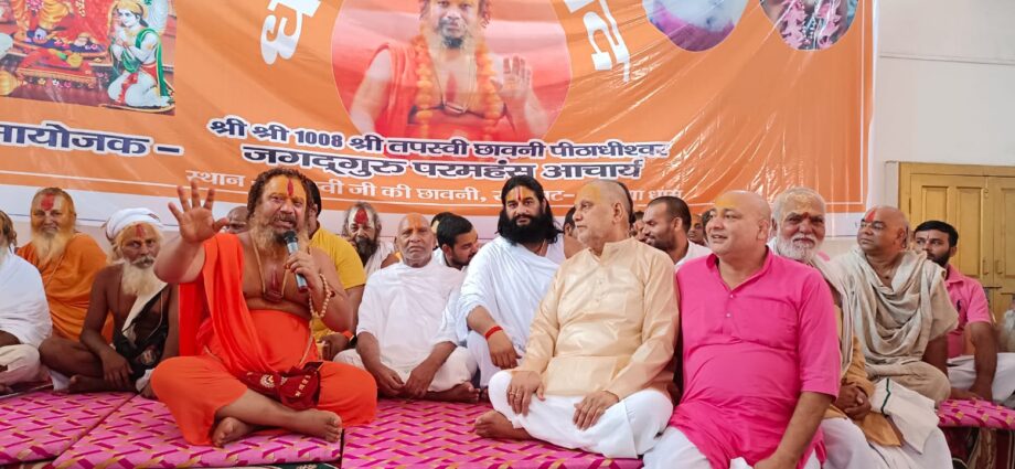 धर्मसंसद की अध्यक्षता करते हुए तपस्वी छावनी पीठाधीश्वर जगतगुरु परमहंस आचार्य ने कहा कि सनातन धर्म काे मानने वाले लाेगाें काे अपमानित करने का काम किया जा रहा। संवैधानिक पदों पर बैठे लाेग असंवैधानिक बयान दे रहे हैं। हम सब सनातन धर्म के पवित्र मार्ग पर चलने वाले लाेग हैं। हम किसी धर्म के विराेधी नहीं हैं लेकिन यदि कोई हमारे सनातन धर्म पर कुठाराघात करेगा ताे हम चुप बैठने वाले नहीं हैं। देश के 120 कराेड़ सनातनी अभी जिंदा हैं। जाे सनातन धर्म पर अमर्यादित टिप्पणी, निंदा करने वालाें काे सत्ता से हटाने व भगाने का काम करेंगे।