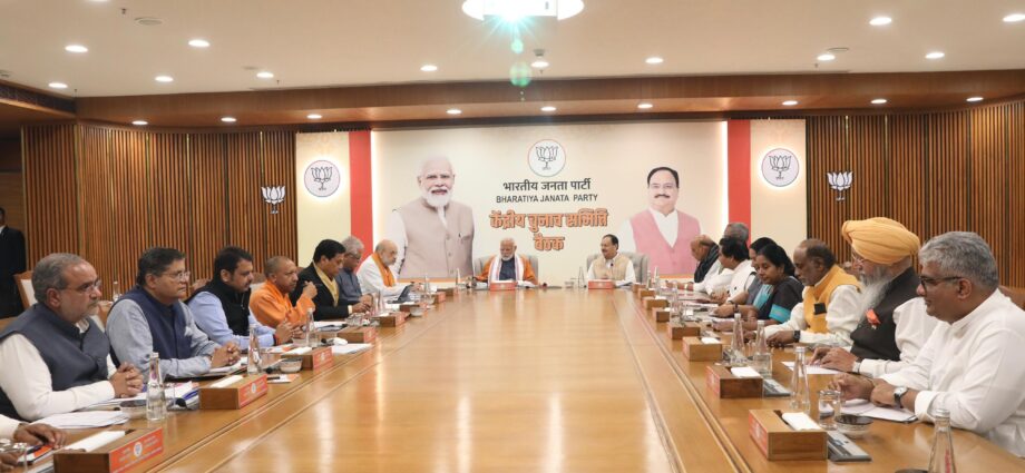 नई दिल्ली, 01 मार्च (हि.स.)। भारतीय जनता पार्टी (भाजपा) केंद्रीय चुनाव समिति ने लोकसभा चुनाव के लिए अपने उम्मीदवारों की पहली सूची पर लंबा मंथन किया है। समिति की बैठक में विचार-विमर्श का यह दौर लगभग साढ़े चार घंटे चला। यह बैठक आज (शुक्रवार) तड़के समाप्त हुई। बैठक में प्रधानमंत्री नरेन्द्र मोदी समेत कई वरिष्ठ नेता शामिल हुए।