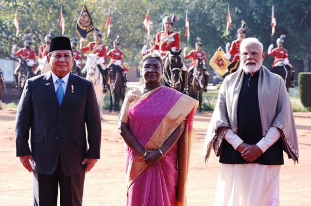 इंडोनेशिया के राष्ट्रपति सुबियांतो भारत की पहली राजकीय यात्रा पर हैं। वो कल भारत के 76वें गणतंत्र दिवस समारोह में मुख्य अतिथि होंगे। विदेश मंत्रालय के प्रवक्ता ने एक्स पोस्ट में कहा, “एक खास दोस्त का विशेष स्वागत। राष्ट्रपति द्रौपदी मुर्मु और प्रधानमंत्री नरेन्द्र मोदी ने इंडोनेशिया के राष्ट्रपति प्रबोवो सुबियांतो का भारत की पहली राजकीय यात्रा पर गर्मजोशी से स्वागत किया। राष्ट्रपति प्रबोवो का राष्ट्रपति भवन के प्रांगण में औपचारिक स्वागत और गार्ड ऑफ ऑनर दिया गया।”