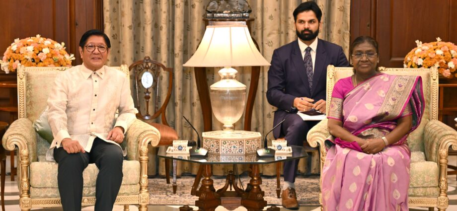 नई दिल्ली: राष्ट्रपति द्रौपदी मुर्मु ने मंगलवार को राष्ट्रपति भवन में फिलीपींस के राष्ट्रपति फर्डिनेंड रोमुयल्डेज मार्कोस जूनियर का स्वागत किया। यह उनकी भारत की पहली राजकीय यात्रा है। राष्ट्रपति मुर्मु ने उनके सम्मान में एक भव्य रात्रिभोज का भी आयोजन किया।