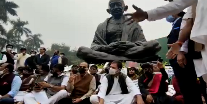 नई दिल्ली: राज्यसभा से निलंबित 12 सदस्यों की वापसी की मांग को लेकर कांग्रेस और अन्य विपक्षी दलों ने गुरुवार को महात्मा गांधी की प्रतिमा के नीचे धरना दिया। कांग्रेस के पूर्व अध्यक्ष राहुल गांधी और लोकसभा में कांग्रेस के नेता अधीर रंजन चौधरी के नेतृत्व में विरोध प्रदर्शन किया गया।