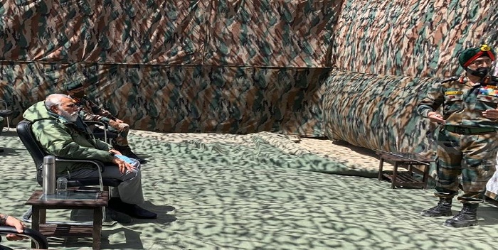 New Delhi: प्रधानमंत्री नरेंद्र मोदी शुक्रवार को अचानक लद्दाख के लेह पहुंचे. यहां उन्होंने अग्रिम मोर्चा नेहु में आर्मी, एयरफोर्स और आईटीबीपी के जवानों से मिले.