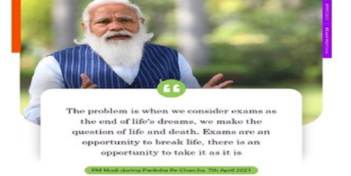 संवाद के दौरान प्रधानमंत्री ने कहा,”अभिभावकों को बच्चों के साथ अधिक समय बिताना चाहिए। उन्हें घर में तनावमुक्त माहौल देना चाहिए। परीक्षा जीवन में महज एक पड़ाव है। यह सब कुछ नहीं है। इसे लेकर डरने की कोई जरूरत नहीं है। परीक्षा के नतीजों से बच्चों की प्रतिभा का आकलन नहीं करना चाहिए।”