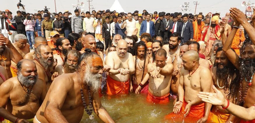 केंद्रीय गृहमंत्री के साथ जूना अखाड़े के आचार्य महामंडलेश्वर स्वामी अवधेशानंद गिरि महाराज, जूना अखाड़े के संरक्षक हरिगिरि महाराज, अखिल भारतीय अखाड़ा परिषद के अध्यक्ष एवं मनसा देवी ट्रस्ट हरिद्वार के अध्यक्ष श्रीमहंत रवींद्र पुरी महाराज, निरंजनी अखाड़े के पीठाधीश्वर महामंडलेश्वर स्वामी कैलाशानंद गिरि, योग गुरु बाबा रामदेव सहित अन्य धर्माचार्यों और संतों के साथ स्नान किया। मुख्यमंत्री आदित्यनाथ, उप मुख्यमंत्री केशव मौर्य ने भी गृहमंत्री के साथ आस्था की डुबकी लगाई। स्नान के बाद अमित शाह ने सूर्य भगवान को पांच बार अर्घ्य देकर प्रणाम किया। अमित शाह ने स्नान के बाद अक्षयवट का दर्शन-पूजन भी किया।
