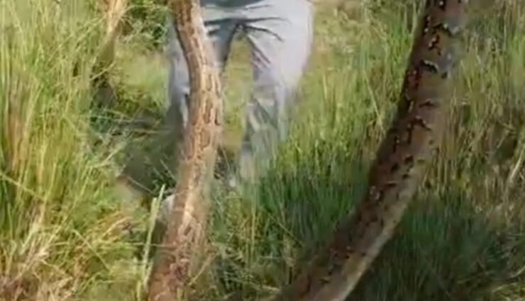 बिजनौर: गांव नवादा के निकट स्थित नहर से एक 15 फिट के अजगर को वन विभाग की टीम पकड़ने में सफल हुई है। अजगर को पकड़ने में टीम को खासी मशक्कत करनी पड़ी।
