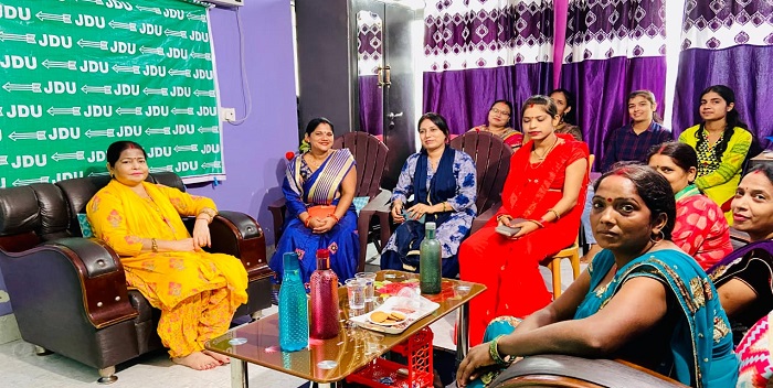 Chhapra: सारण जिला महिला जनता दल यूनाइटेड के प्रखंड अध्यक्षो की बैठक जिला अध्यक्ष कुसुम देवी के नेतृत्व में उनके गुदरी छपरा स्थित कार्यालय में हुई। अध्यक्ष कुसुम देवी द्वारा बताया गया कि आप सभी अपने अपने प्रखंडों में कोविड-19 का टीका दिलाने हेतु सभी को प्रेरित करें। जो भी टीका नहीं लिए हैं उन्हें टीका लेने हेतु जागृत करें और टीका दिलवाए। प्रखंड अध्यक्षों को बताया गया कि जनता की सेवा करिए और जनता के बीच में रहिए। जनता दल यूनाइटेड ही ऐसी पार्टी है जो महिलाओं के हित का ख्याल रखती है।