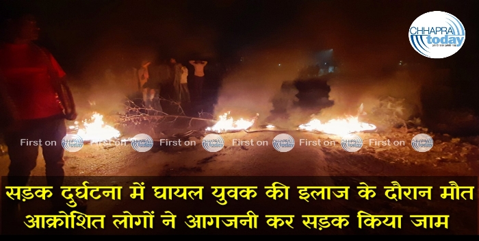 सड़क दुर्घटना में घायल युवक की मौत के बाद आक्रोशित लोगों ने आगजनी कर छपरा पटना पथ किया जाम