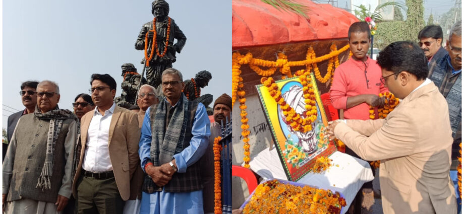 Chhapra: भोजपुरी के शेक्सपियर कहे जाने वाले भिखारी ठाकुर के जयंती समारोह 2023 के शुभ अवसर पर जिला पदाधिकारी एवं अन्य गण मान्य व्यक्तियों के द्वारा भिखारी ठाकुर के मूर्ति पर माल्यार्पण किया गया।