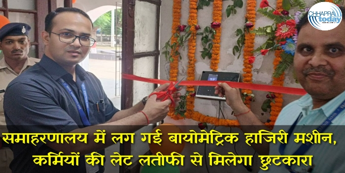 Chhapra: जिलाधिकारी राजेश मीणा ने सोमवार को समाहरणालय के स्थापना शाखा में बायोमेट्रिक उपस्थिति सिस्टम की शुरुआत की. इस दौरान प्रभारी जिला स्थापना शाखा पुष्पेंद्र कुमार मौजूद थे.