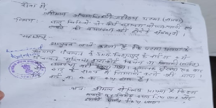 आवेदन में वार्ड सदस्य उदय कुमार ठाकुर, लालबाबू राय, रामयोध्या राय, शिवजी राय, धर्मेंद्र कुमार, ललन कुमार, संदीप कुमार अख्तर अली, गूँजेश कुमार, शैलेश कुमार, विपिन कुमार सहित सैकड़ों ग्रामीण हस्ताक्षरित है.