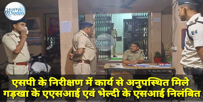 Chhapra: पुलिस अधीक्षक संतोष कुमार द्वारा रात्रि में कई थानों की गस्ती एवं ऑडी ड्यूटी चेक किया गया. इस क्रम में भेल्दी थाना एवं गरखा थाना के क्रमशः द्वितीय एवं तृतीया ओ डी पदाधिकारी कर्तव्य से अनुपस्थित पाए गए.