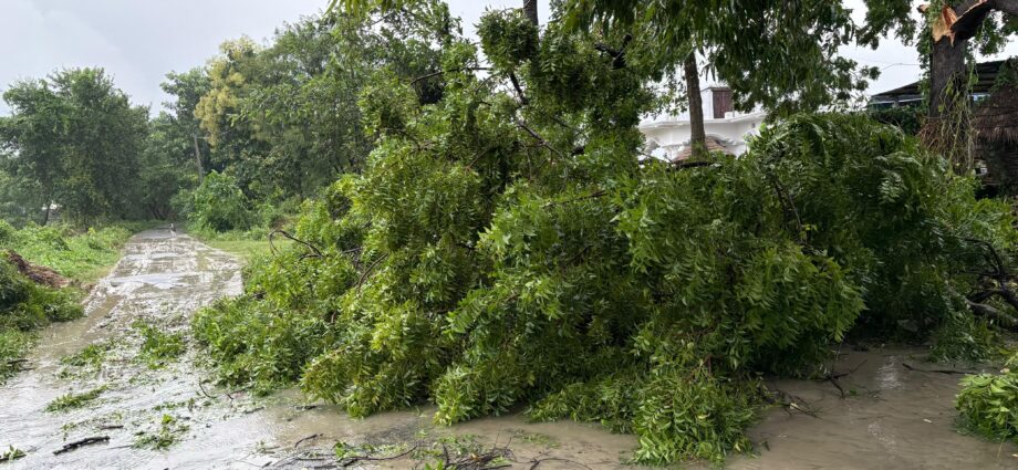 Chhapra: जिले के विभिन्न ग्रामीण क्षेत्रों में लगातार हो रही मूसलधार बारिश और तेज गर्जन से जनजीवन अस्त-व्यस्त हो गया है। तेज हवाओं के साथ हुई बारिश के कारण कई स्थानों पर सड़क किनारे पेड़ गिर गए हैं, वहीं बिजली के खंभे टूटकर गिर जाने से विद्युत आपूर्ति भी बाधित हो गई है।