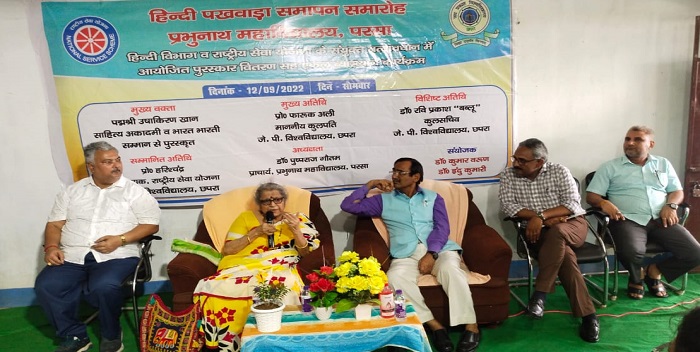 Chhapra: प्रभुनाथ महाविद्यालय, परसा में हिंदी विभाग एवं राष्ट्रीय सेवा योजना के संयुक्त तत्वावधान में हिंदी दिवस के अवसर पर पुरस्कार वितरण व समापन समारोह का आयोजन किया गया। जिसमें विजेता रहे विद्यार्थियों को किताबें देकर पुरस्कृत किया गया।