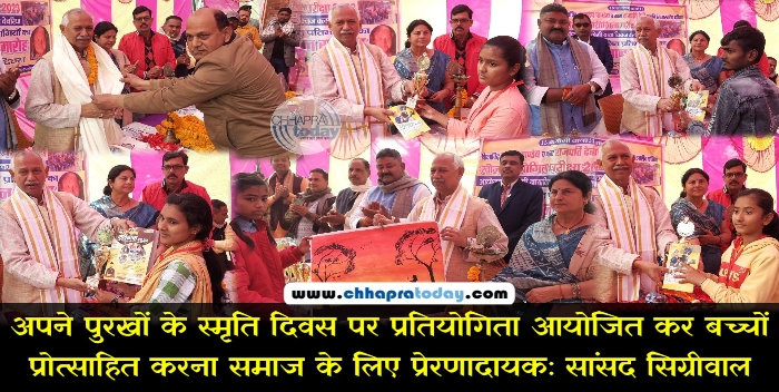 अपने पुरखों के स्मृति दिवस पर प्रतियोगिता आयोजित कर बच्चों व युवाओ को सम्मानित व प्रोत्साहित करना समाज के लिए प्रेरणादायक: सांसद जनार्दन सिंह सिग्रीवाल
