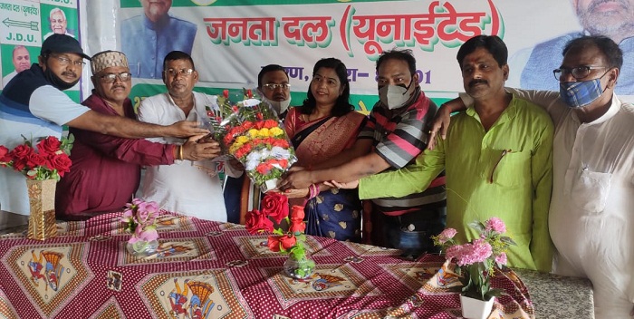 Chhapra: सारण जिला जनता दल (यू०) के वरीय नेताओं ने कार्यालय में एक सम्मान समारोह का आयोजन कर नगर परिषद छपरा की पूर्व अध्यक्ष शोभा देवी को जिन्हें सारण लोकसभा के महिला प्रकोष्ठ का प्रभारी नियुक्त किया गया है को बधाई दी गयी.