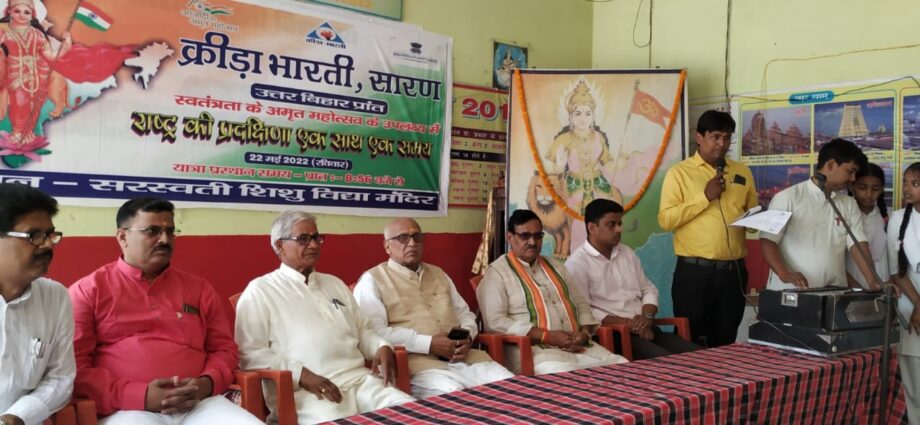 Chhapra: देश की स्वतंत्रता के अमृत महोत्सव के अवसर पर खेल और खिलाड़ियों की अखिल भारतीय संगठन क्रीड़ा भारती के द्वारा रविवार 22 मई को आयोजित मां भारती की अभिनव अर्चना क्रीड़ा भारती के साथ राष्ट्र प्रदक्षिणा कार्यक्रम में शामिल युवाओं का छपरा पहुंचने पर भव्य स्वागत किया गया।