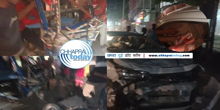 Chhapra: भगवान बाजार थाना क्षेत्र के काशी बाजार मेन रोड पर शराब लदे अनियंत्रित पटना नंबर होंडा अमेज कार ने ऑटो और स्कूटी में ठोकर मार दी। टक्कर इतनी जोरदार थी कि ऑटो और कार दोनों के साथ चपेट में आई एक स्कूटी भी क्षतिग्रस्त हो गई। वहीं कार के एयर बैग खुल गए।