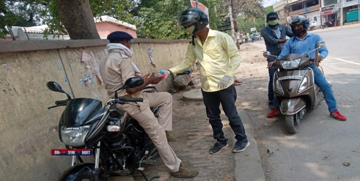 इसी क्रम के शनिवार को छपरा मे ड्यूटी कर रहे पुलिसकर्मियों और सफाई कर्मचारियों को पानी की बोतल, बिस्कुट, नमकीन, सैनेटाइजर, मास्क और ग्लब्स का वितरण किया. शहर मे घूम-घूमकर विभिन्न चौक चौराहे सड़क पर ड्यूटी कर रहे पुलिसकर्मी और सफाई कर्मचारियों को सैनेटाइजर, मास्क और ग्लब्स दिया.