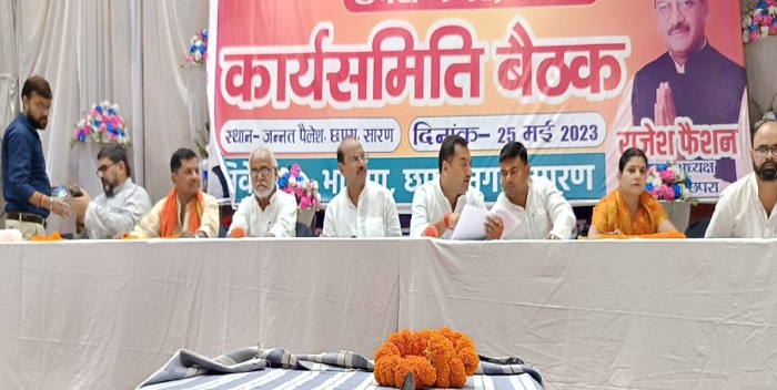 Chhapra: भारतीय जनता पार्टी नगर कार्यकारिणी की प्रथम बैठक नगर अध्यक्ष राजेश फैशन की अध्यक्षता में सम्पन्न हुई। कार्यक्रम का उद्घाटन भारत माता, डॉ श्याम प्रसाद मुखर्जी, पंडित दीनदयाल उपाध्याय के तैल चित्र पर पुष्पांजलि व दिप प्रज्वलित कर मंचासीन अतिथियों के द्वारा किया गया।
