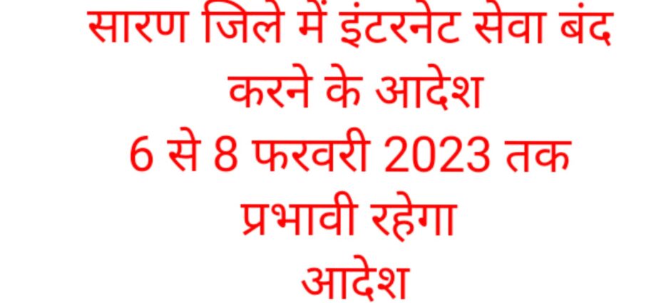 गृह विभाग के द्वारा जारी आदेश में कहा गया है कि सारण जिले में 6 फरवरी से 8 फरवरी 2023 तक इन्टरनेट सेवा बंद रहेगी. इस दौरान फेसबुक, ट्विटर, यूट्यूब समेत अन्य सोशल साइट्स पर सामग्री अपलोड नहीं की जा सकेगी.