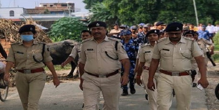 गरखा थाना एवं अवतारनगर थानान्तर्गत मतदान प्रक्रिया को स्वच्छ, निष्पक्ष, भयमुक्त एवं शांतिपूर्ण वातावरण में सम्पन्न कराने हेतु असामाजिक तत्वों अवैध आग्नेयास्त्र धारको, मिनीगन फैक्ट्री, देशी शराब भट्ठी ध्वस्त करने एवं शराब कारोबारियों के विरुद्ध कार्रवाई के मद्देनजर एसपी संतोष कुमार के निर्देशन में अनुमण्डल पुलिस पदाधिकारी सदर मुनेश्वर प्रसाद सिंह, पुलिस उपाधीक्षक ( मुख्यालय ) के नेतृत्व में पुलिस उपाधीक्षक ( परिक्ष्यमान ), प्रभारी ALTF, अंचल पुलिस निरीक्षक सदर, मुफसिल थानाध्यक्ष गरखा, अवतारनगर एवं अन्य पुलिस पदाधिकारियों एवं कर्मियों के सहयोग से पुलिस ने एरिया डोमिनेशन एवं फ्लैग मार्च किया.