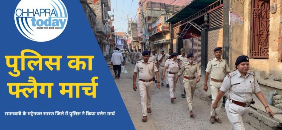 Chhapra: रामनवमी पर्व एवं चैती दुर्गा पूजा 2022 को जिला अन्तर्गत शांतिपूर्ण एवं सौहार्दपूर्ण वातावरण में संपन्न कराने के मद्देनजर सारण पुलिस ने विभिन्न थाना क्षेत्रों में फ्लैग मार्च किया.