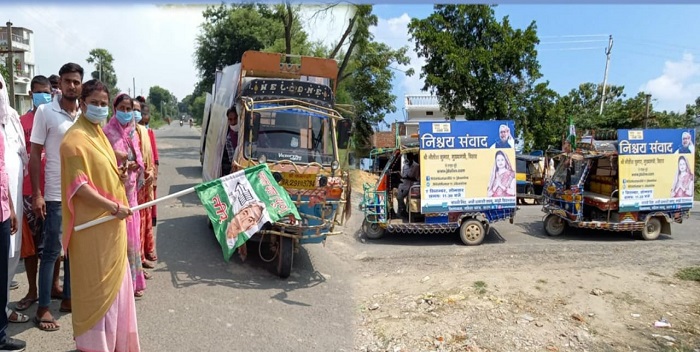 जलालपुर/मांझी/कोपा/दाउदपुर: आगामी 7 सितंबर को सीएम नीतीश कुमार के डिजिटल जनसंवाद को लेकर तैयारियां जोरों पर हैं. इसको लेकर जदयू सारण की महिला जिला अध्यक्ष माधवी सिंह ने शुक्रवार को सीएम नीतीश कुमार की रैली के लिए प्रचार रथ को हरी झंडी दिखाकर रवाना किया. इस मौके पर उन्होंने मांझी विधानसभा के जलालपुर प्रखण्ड के बसडीला गांव से अलग-अलग क्षेत्रों में प्रचार के लिए रथ को रवाना किया. इस मौके पर उन्होंने बताया कि मांझी विधानसभा में 4-4 प्रचार रथ घूमेंगे जो लोगों को यह नीतीश कुमार की रैली को लेकर जानकारी देंगे. उन्होंने बताया कि 7 सितंबर को 11:30 बजे सीएम नीतीश कुमार बिहार की जनता को संबोधित करेंगे. इसे मांझी विधानसभा के लाखों लोग डिजिटल रूप से देखेंगे. पंचायतों व गॉंवों में लोगों के लिए स्मार्टफोन या फिर एलईडी स्क्रीन लगाकर सीएम नीतीश कुमार से डायरेक्ट जुड़ने की व्यवस्था की गई है. प्रचार रथ जलालपुर, कोपा, मांझी, दाउदपुर के साथ मांझी विधानसभा के सभी पंचायतों व गांवों में घूम- घूम कर सीएम नीतीश कुमार की रैली को लेकर प्रचार प्रसार करेंगे.