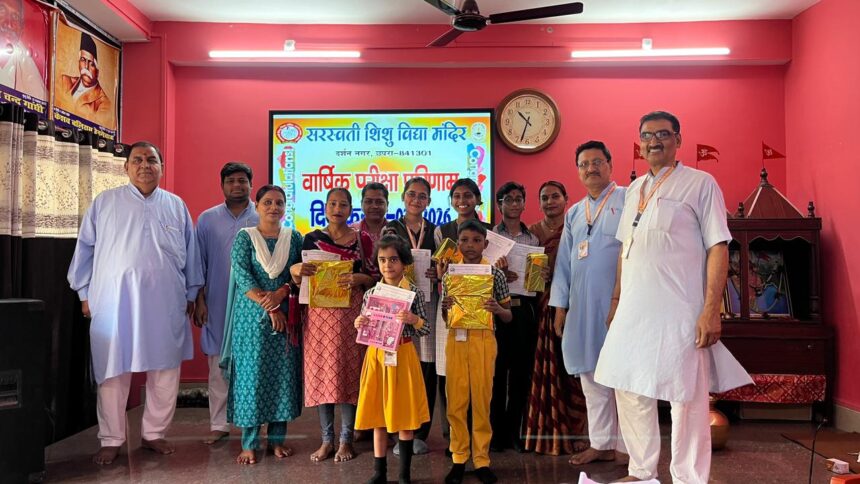 Chhapra: विद्या भारती विद्यालय, सरस्वती शिशु विद्या मंदिर में शैक्षणिक सत्र 2025-26 की वार्षिक परीक्षा का परीक्षाफल घोषित कर दिया गया। विद्यालय की लिखित परीक्षा लोक शिक्षा समिति के निर्देशानुसार 10 मार्च से 24 मार्च 2026 तक संपन्न हुई थी। इसके उपरांत उत्तर पुस्तिकाओं का मूल्यांकन शून्य त्रुटि के आधार पर 28 मार्च तक पूरा किया गया।