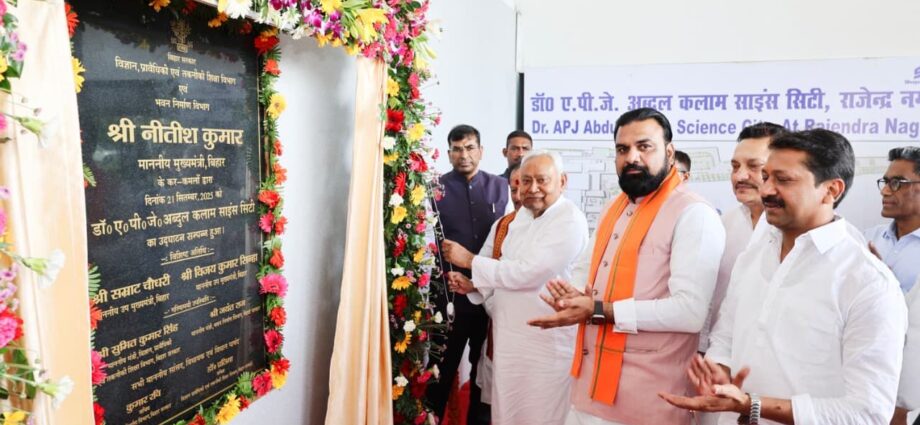 Chhapra/Patna: मुख्यमंत्री नीतीश कुमार ने डॉ. ए.पी.जे. अब्दुल कलाम साइंस सिटी का उद्घाटन किया। मुख्यमंत्री ने कहा कि इस साइंस सिटी में विज्ञान आधारित 5 गैलरी और 269 रोचक विज्ञान प्रदर्श तथा 4 डी थियेटर आकर्षण के प्रमुख केन्द्र हैं। इसके निर्माण कार्य का हमने कई बार निरीक्षण किया है।