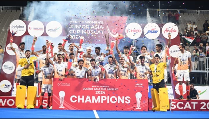मस्कट (ओमान), 04 दिसंबर (हि.स.)। भारतीय जूनियर पुरुष हॉकी टीम ने आज मस्कट (ओमान) में पुरुष जूनियर एशिया कप के हाई स्कोरिंग फाइनल में पाकिस्तान को 5-3 से हराकर अपने खिताब का सफलतापूर्वक बचाव किया। अरिजीत सिंह हुंदल के चार गोल की मदद से गत चैंपियन भारत ने बुधवार को फाइनल मुकाबले में चिर प्रतिद्वंद्वी पाकिस्तान को हराकर खिताब की हैट्रिक लगाई। यह महाद्वीपीय टूर्नामेंट में भारत का पांचवां खिताब रहा। इससे पहले भारत ने वर्ष 2004, 2008, 2015 और 2023 में भी यह खिताब अपने नाम किया था। कोविड-19 महामारी के कारण यह टूर्नामेंट 2021 में आयोजित नहीं किया जा सका था। हॉकी इंडिया ने इस अवसर पर प्रत्येक खिलाड़ी को 2 लाख और प्रत्येक सहयोगी स्टाफ को 1 लाख का नकद इनाम देने की घोषणा की।