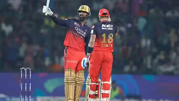 लक्ष्य का पीछा करने उतरी आरसीबी की शुरुआत अच्छी नहीं थी। 26 के स्कोर पर टीम ने तीन विकेट गंवा दिए। अक्षर पटेल ने जैकब बेथेल (12) और देवदत्त पडिक्कल (0) को अना शिकार बनाया। वहीं, करुण नायर ने कप्तान रजत पाटीदार को रनआउट कर आरसीबी को तीसरा झटका दिया। इसके बाद विराट कोहली और क्रुणाल पांड्या ने मोर्चा संभाला। दोनों के बीच चौथे विकेट के लिए 119 रन की साझेदारी हुई, जो आरसीबी की किसी भी जोड़ी के द्वारा निभाई गई सबसे बड़ी पार्टनरशिप है और चौथे विकेट के लिए इस सत्र की सबसे बड़ी साझेदारी भी है। दोनों ने दिल्ली के गेंदबाजों पर शिकंजा कसते हुए आरसीबी को शानदार जीत दिलाने में अहम भूमिका निभाई।