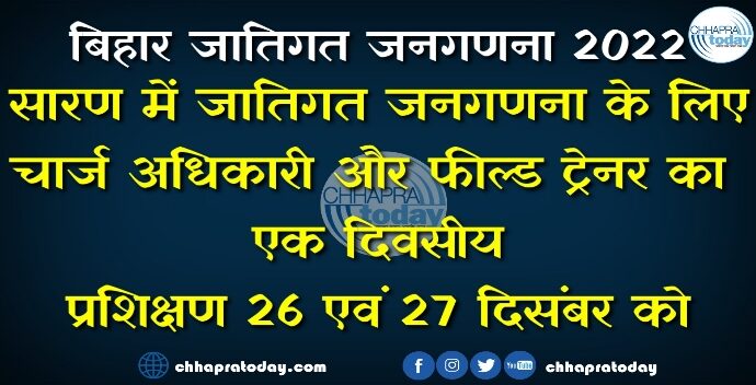 सारण में जातिगत जनगणना के लिए चार्ज अधिकारी और फील्ड ट्रेनर का प्रशिक्षण 26 एवं 27 दिसंबर को
