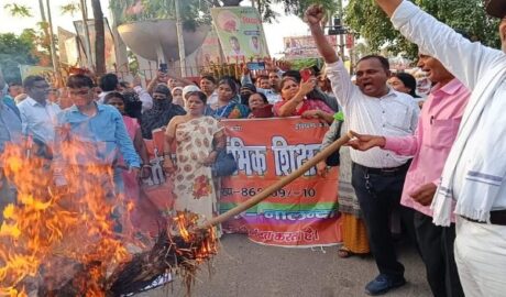 आक्रोशित शिक्षकों द्वारा सरकार के खिलाफ नारे लगाते हुए निर्गत अवकाश तालिका संशोधन पत्र को अविलंब वापस लेने की मांग की गई.
