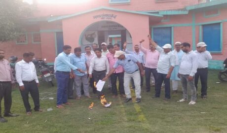 मकेर में शिक्षकों ने जलाई अवकाश तालिका संशोधन की प्रतियां, कहा नही रद्द हुआ पत्र तो सरकार भुगतेगी खामियाजा