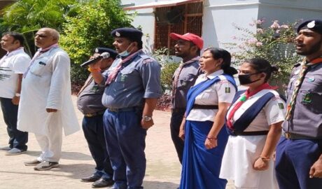 जिला मुख्य आयुक्त हरेन्द्र सिंह एवं विद्यालय के प्राचार्य नीरज कुमार ने ध्वजारोहण करके शिविर का किया उद्घाटन