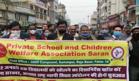 Chhapra: सरकार से प्राइवेट स्कूलों को खोलवाने की मांग को लेकर प्राइवेट स्कूल एंड वेलफेयर एसोसिएशन के बैनर तले प्राइवेट स्कूल के संचालकों ने शहर के नगरपालिका चौक पर धरना दिया.