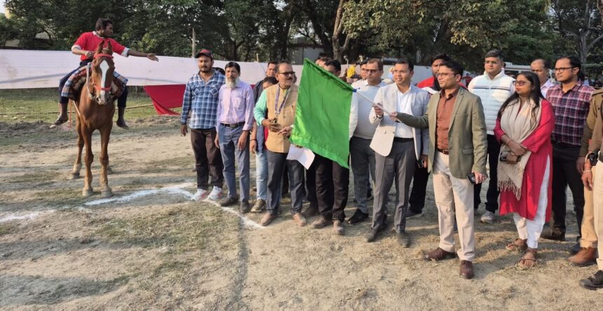 छपरा: सोनपुर मेले मे शुक्रवार को जिलाधिकारी अमन समीर एवं उप विकास आयुक्त द्वारा घुड़दौड़ प्रतियोगिता का उदघाटन हरी झंडी दिखाकर किया गया ।