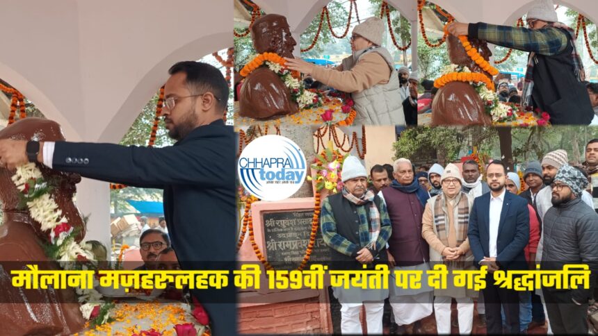 Chhapra: मौलाना मज़हरुल हक की 159वीं जयंती के अवसर पर शहर के मज़हरुलहक चौक पर कार्यक्रम का आयोजन हुआ। जहां विधान पार्षद डॉ वीरेंद्र नारायण यादव, बिहार विधान परिषद के पूर्व उपसभापति सलीम परवेज, जिलाधिकारी वैभव श्रीवास्तव, जदयू अध्यक्ष बैधनाथ नाथ प्रसाद विकल समेत गणमान्य लोगों ने प्रतिमा पर पुष्प अर्पित कर उन्हें श्रद्धांजलि अर्पित की।